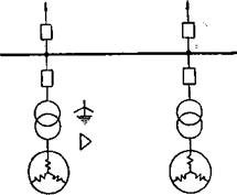 圖6-1這是所謂的單元接線,一臺(tái)發(fā)電機(jī)和一臺(tái)變壓器聯(lián)接成組,變壓器的低壓側(cè)接成三角形,而高壓側(cè)接成星形。就接地電流而言,在這種接線中,各發(fā)電機(jī)之間是彼此隔離幷和高壓系統(tǒng)隔離的;兩臺(tái)發(fā)電機(jī)合用一合變壓器的擴(kuò)大單元接線的情況與此相似。